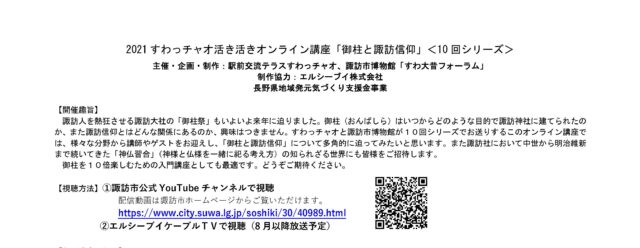 活き活きオンライン講座 御柱と諏訪信仰11月<全10回シリーズ>