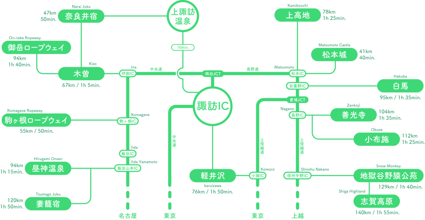 内回り線 JRバス関東(株)TEL 0266-27-8673外回り線 諏訪交通(株)TEL 0266-52-1190