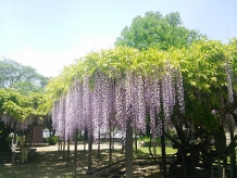 明治9年に植えられ、樹齢約130年を超える市内最古のフジで 諏訪市の天然記念物となっています。今年はゴールデンウィークから見頃をむかえています。 公園内のツツジは、これから見頃となります。