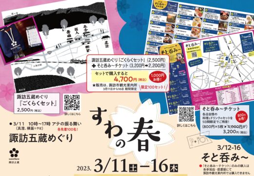 JR上諏訪駅周辺では、「すわの春 ~昼も夜も おいしい たのしい 街歩き~」を開催します。 AR花火で写真を撮りながら、諏訪の春のまち歩き、グルメ、自然を体験してください。 諏訪市観光案内所(JR上諏訪 […]