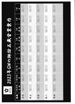 諏訪五蔵営業時間のご案内|2023年ゴールデンウィーク