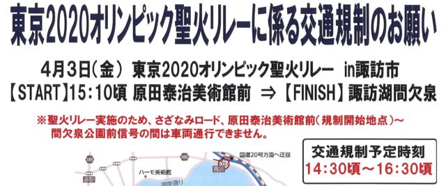 東京2020オリンピック聖火リレー延期(中止)につき、市内聖火リレーも延期(中止)となりました。 このため、4月3日(金)に予定されていた市内交通規制、駐車場の閉鎖は行いません。 […]