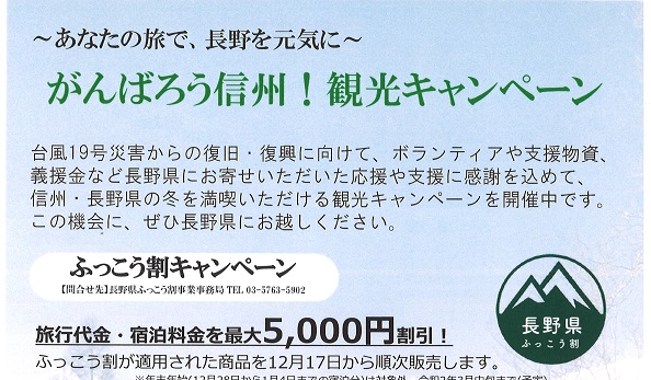 あなたの旅で長野を元気に!がんばろう信州!観光キャンペーン開催中