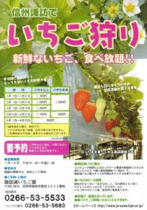 信州 諏訪でいちご狩りできます! 寒さの厳しい諏訪地方で育ったいちごは、とっても甘い!と大好評! 大粒の甘~い いちご♬が、元旦から6月いっぱいまで食べられます。 イチゴは高さ1mほどのところになっているので、 子供の視 […]