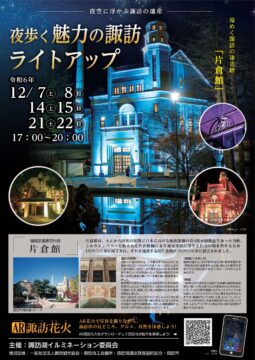 6日間限定の特別な夜 国指定重要文化財片倉館をライトアップ🔦いたします。 煌めく🌟諏訪の建造物をお楽しみください。 どうぞ、暖かくしてお出掛けください。   チラシ【PDF】   期間 : 令和6年  […]