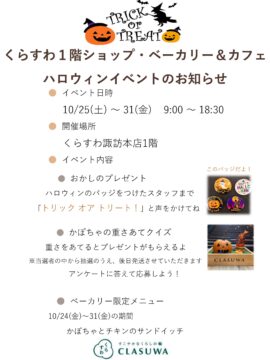 くらすわ1階 ショップ・ベーカリー&カフェ ハロウィンイベントのお知らせ🎃