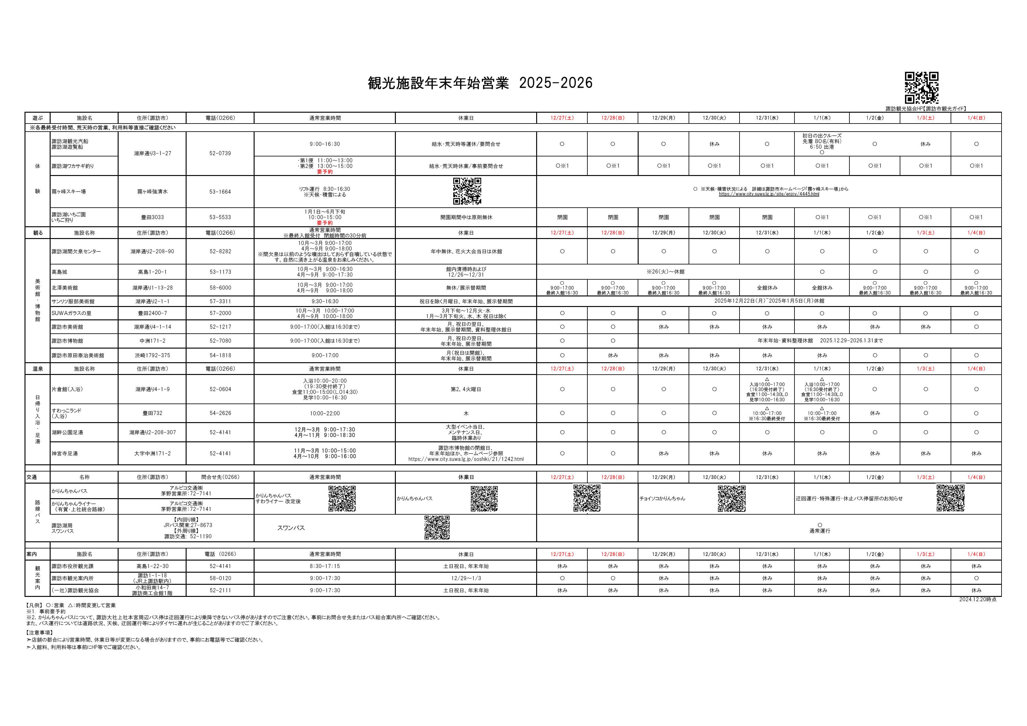 観光施設年末年始営業 2025-2026 PDF