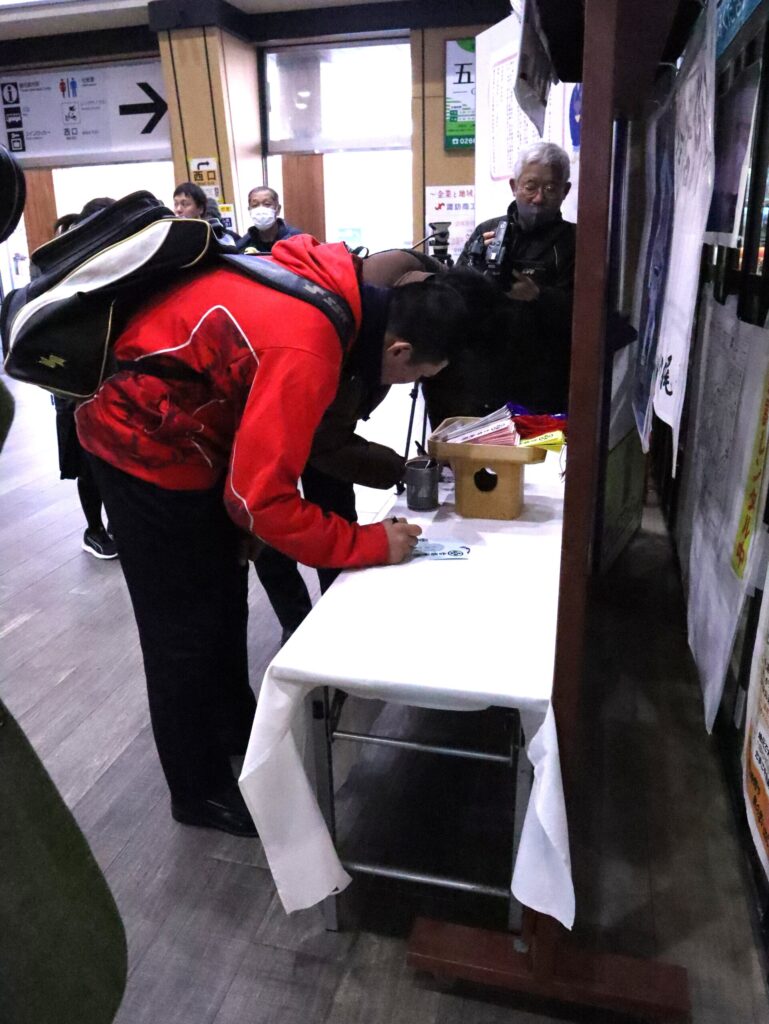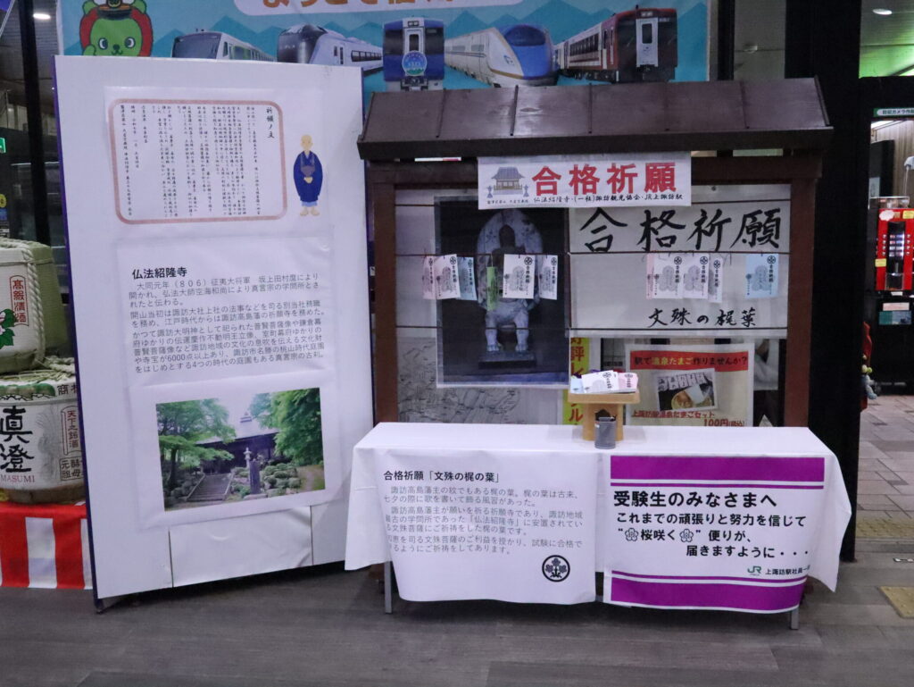 合格祈願「文殊の梶の葉」メッセージカードと受験生応援ボードをJR上諏訪駅コンコースへ設置いたします。