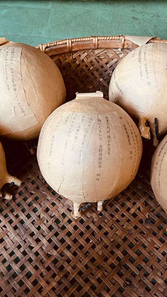 一部ですが、皆さまからいただいたメッセージを花火玉へ貼付する様子を画像でお届けします。