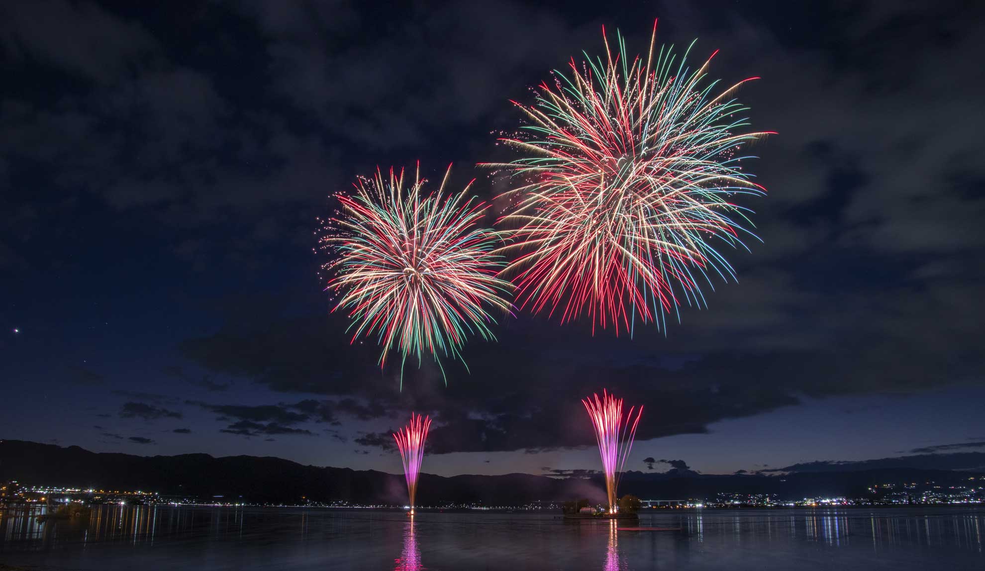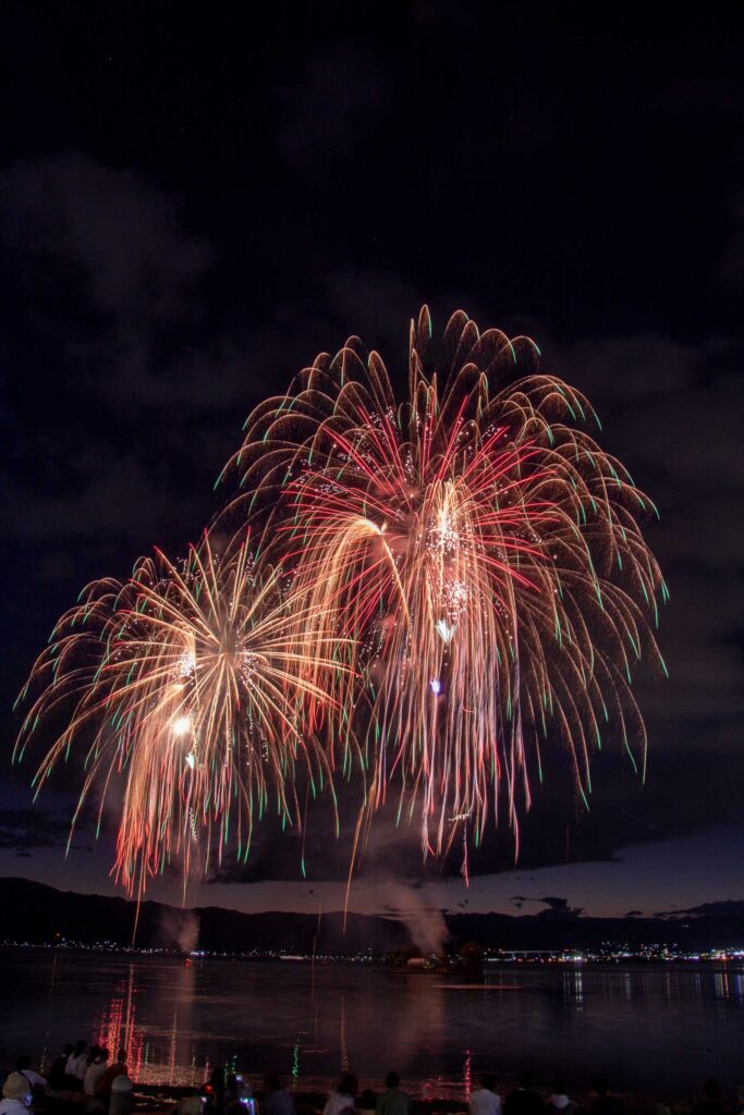 | 打上場所 | 諏訪市湖畔公園前 諏訪湖初島および台船の2ヶ所から打上げ |