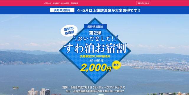 長野県民限定 第3弾【おいでなして!すわ泊お宿割】